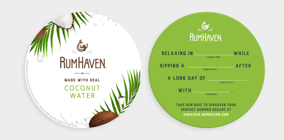 To create stopping power in-store, we developed creative off-premise elements including a necker booklet, shelf talker tearpads and an eye-catching aisle invador. All off-premise point-of-sale supports RumHaven’s main selling point, made with real coconut water, while inviting consumers to engage further on our quiz.
